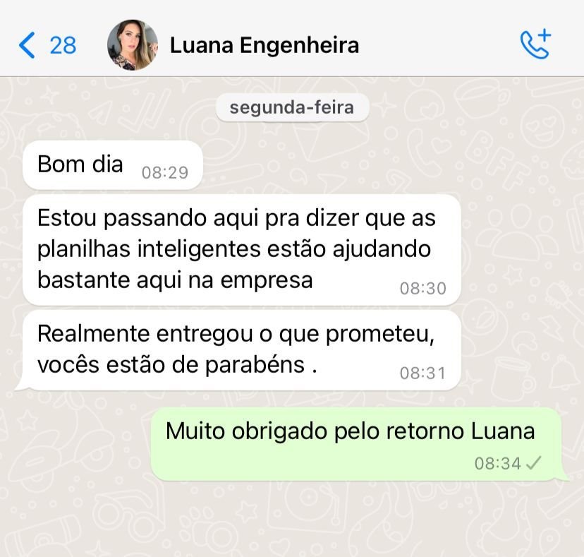 Acreditamos tanto em nosso MEGA pacote de planilhas automáticas que assumimos o risco e te damos 7 dias de garantia para você testar.
